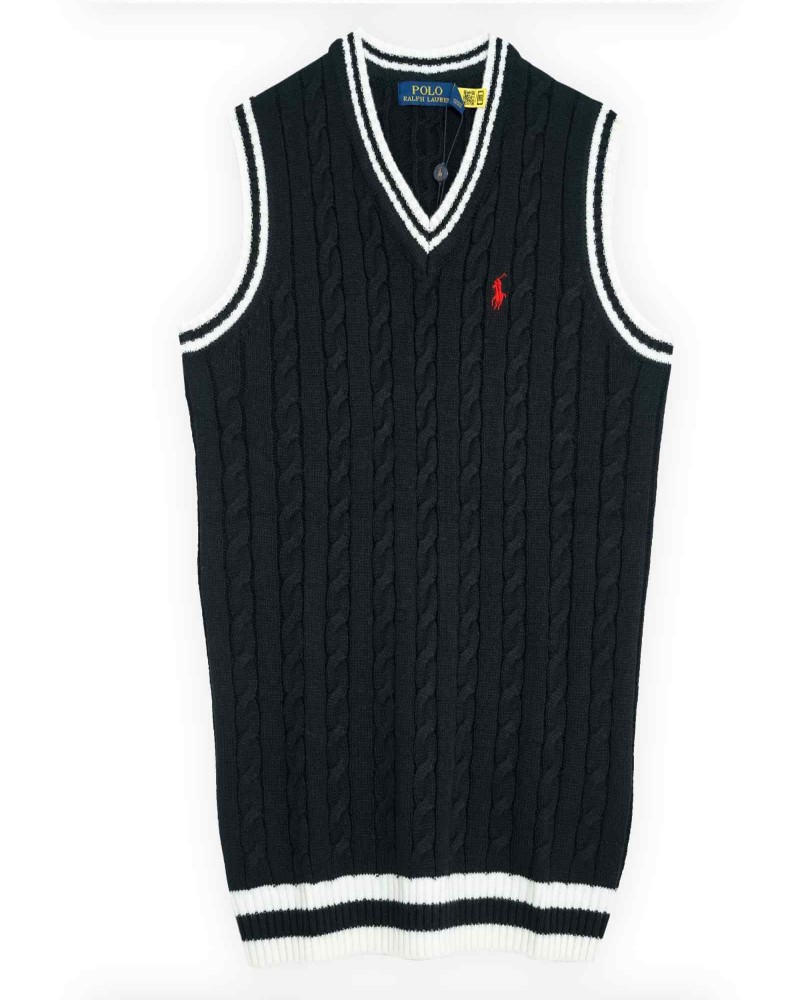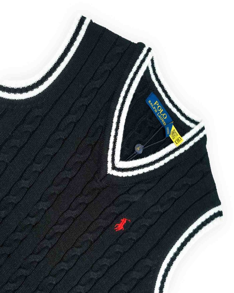 🧵Ralph Lauren Sleeveless Cable Knit Vest Sweater Black