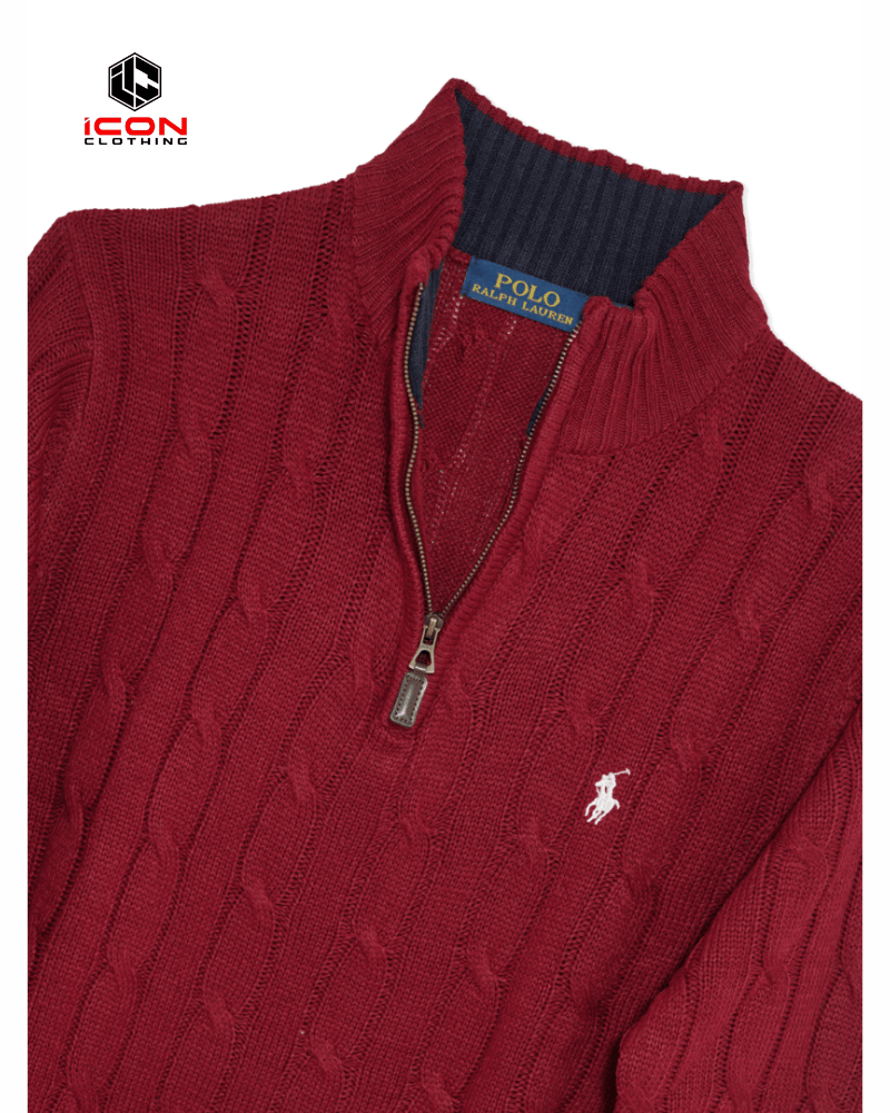 Ralph Lauren Cable Half Zipper Sweater Merun