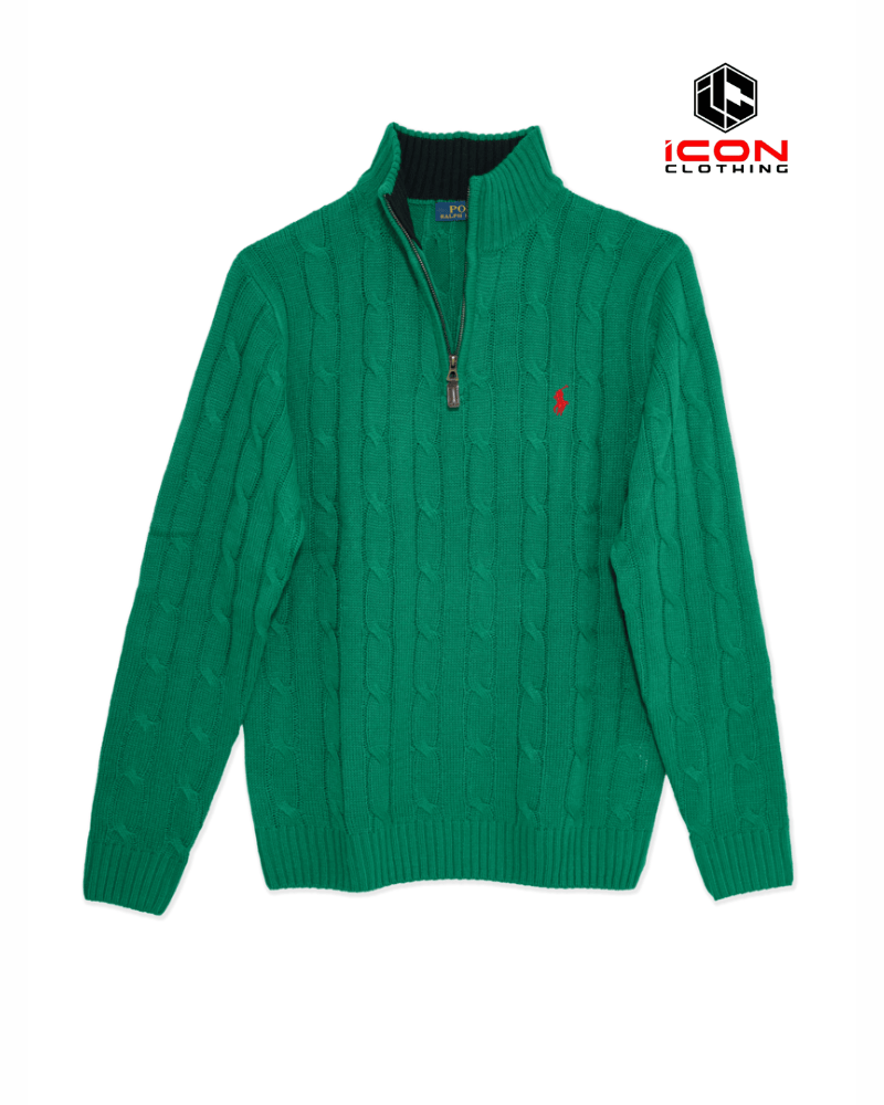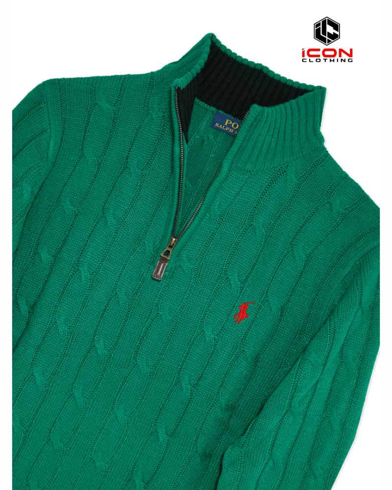 Ralph Lauren Cable Half Zipper Sweater Green