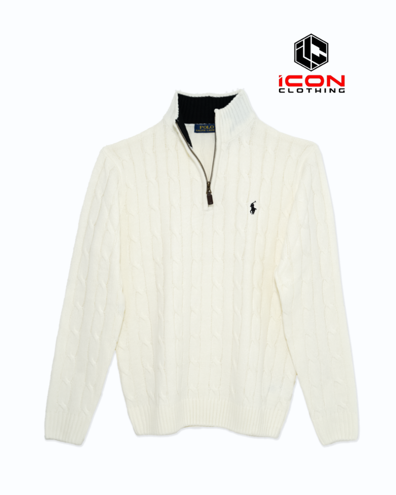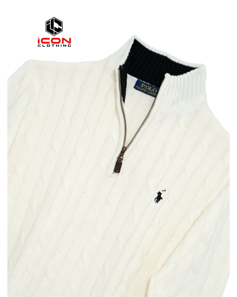 Ralph Lauren Cable Half Zipper Sweater White