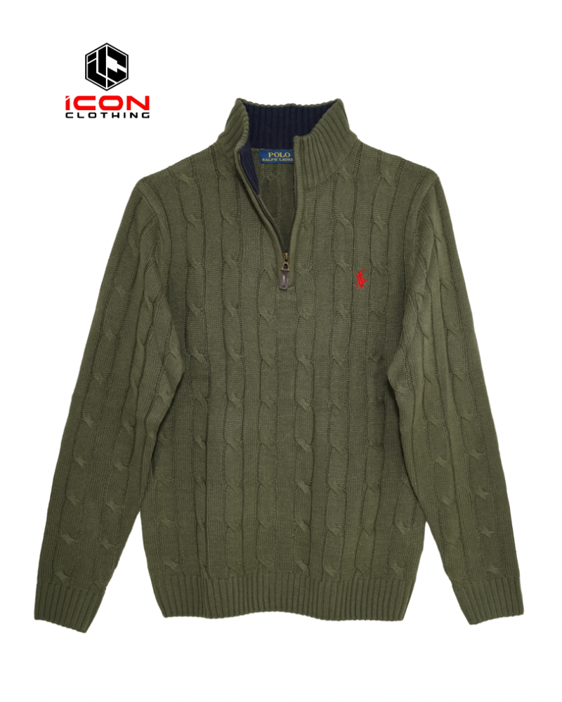 Ralph Lauren Cable Half Zipper Sweater Olive New