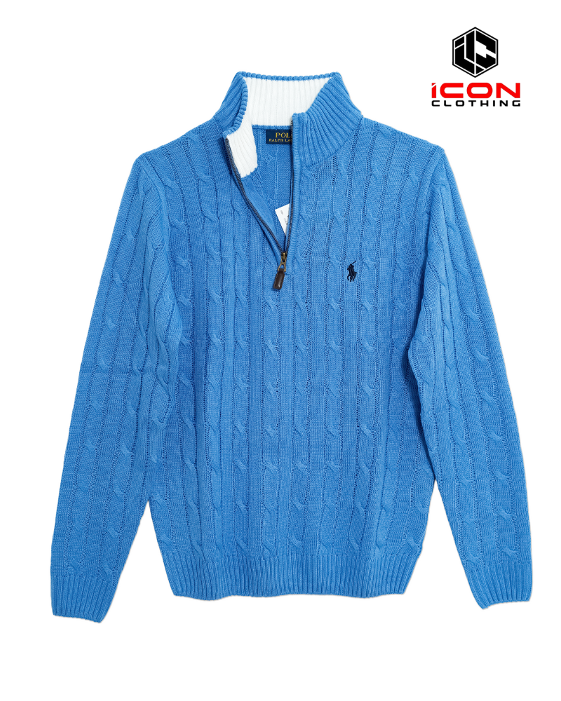 Ralph Lauren Cable Half Zipper Sweater Sky Blue New