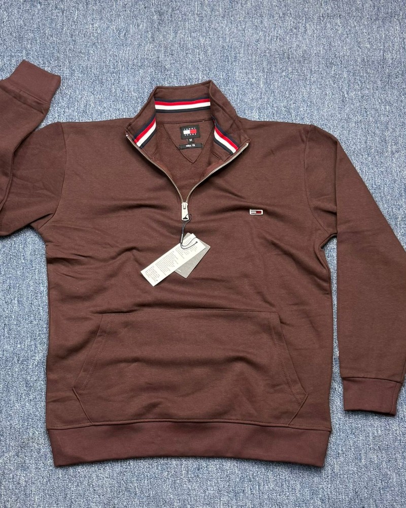 Tommy Men’s Premium Quarter-Zip Pullover Sweatshirt Coffee